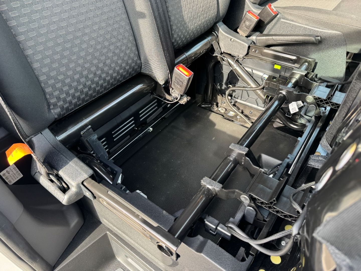 Banquette passager AV 2 places a assise relevable pour acces espace de rangement et tablette rabattable integree au dossier