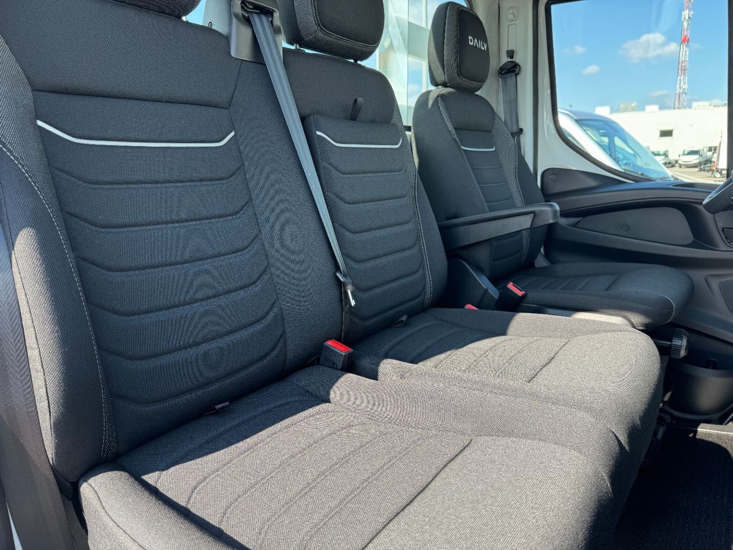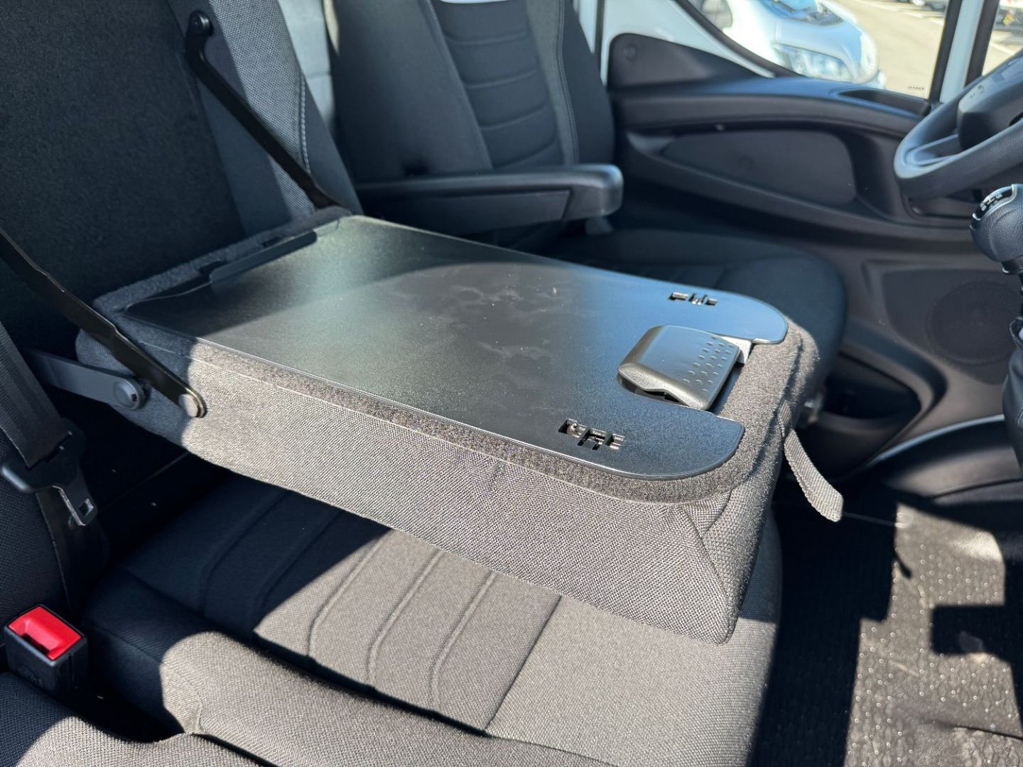 • Banquette passager biplace avec ceinture 3 points + tablette rabattable