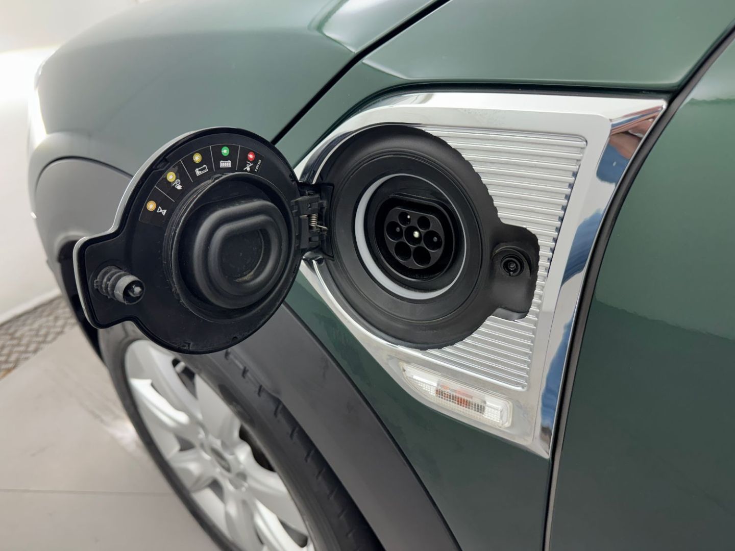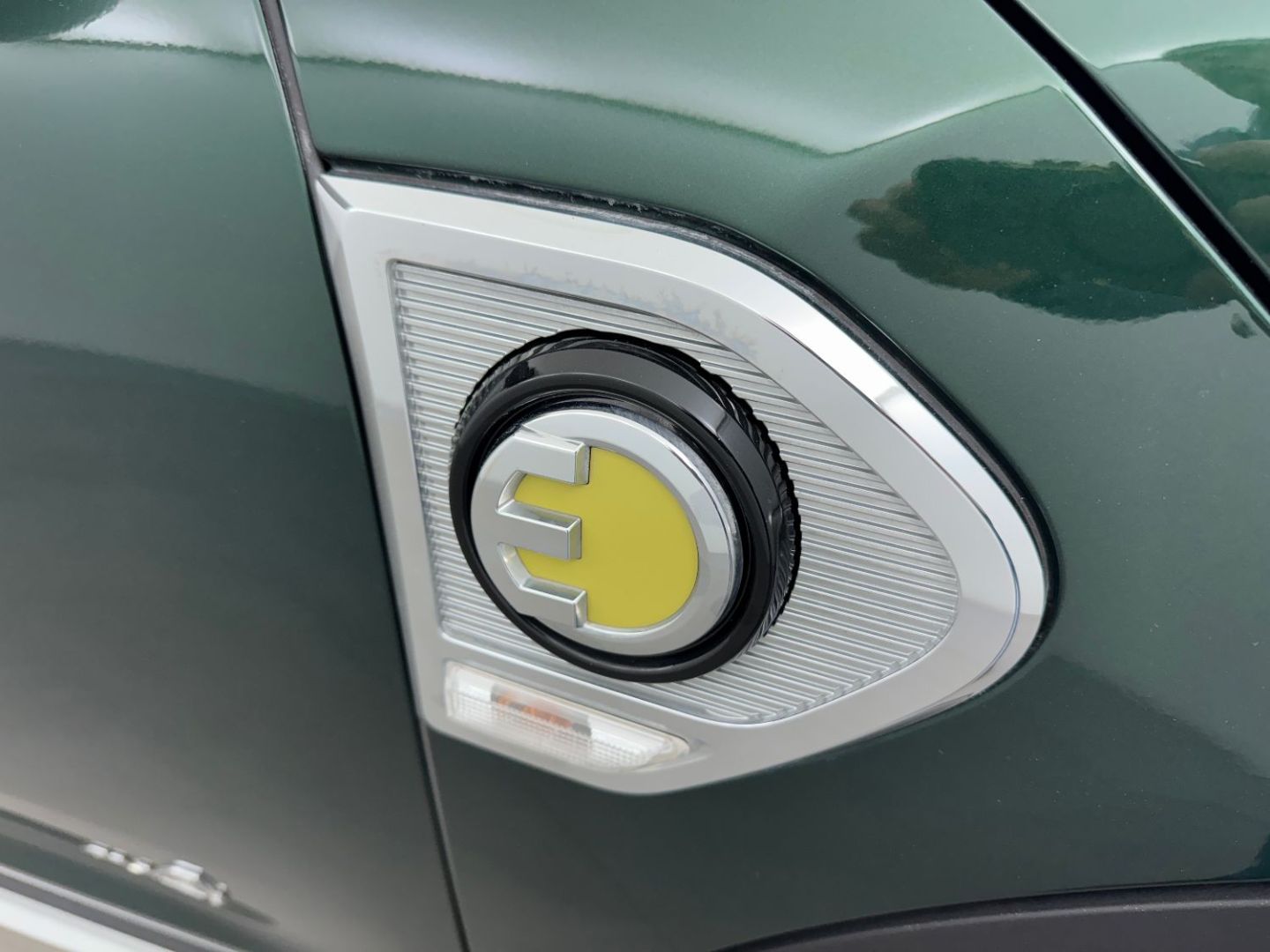• Sidescuttle chromee avec logo mini "e" cote gauche avec couvercle rabattable et acces a la prise de de charge